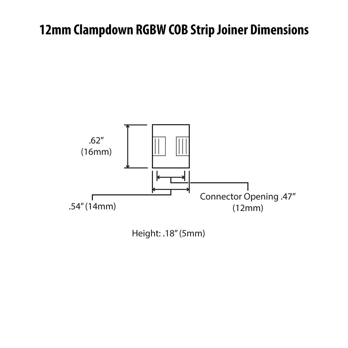 Please Note: This joiner has two terminals on one side and three on the other to match the RGBW COB strips. Make sure your strip's copper pads are properly aligned before closing the hinged mouth.