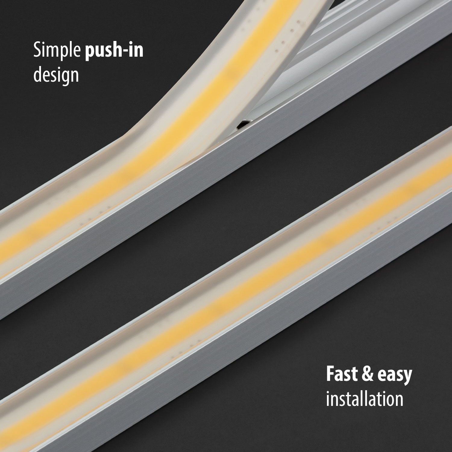 - Fits Single Color Dotless Driverless COB LED Strip Light