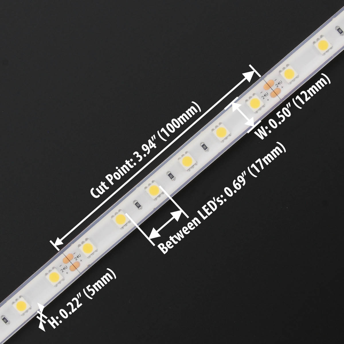 The Waterproof Natural White 72W LED Strip is a 5000K cool white light LED Strip Lights that brings a gorgeous splash of ‘sunlight-white’ Accent light to any outdoor project.With perfectly spaced out LEDs that produce 446 lumen per foot, Solid Apollo’s 72W Waterproof Natural White LED Strip Light produces an exceptionally gentle and beautiful linear radiance.