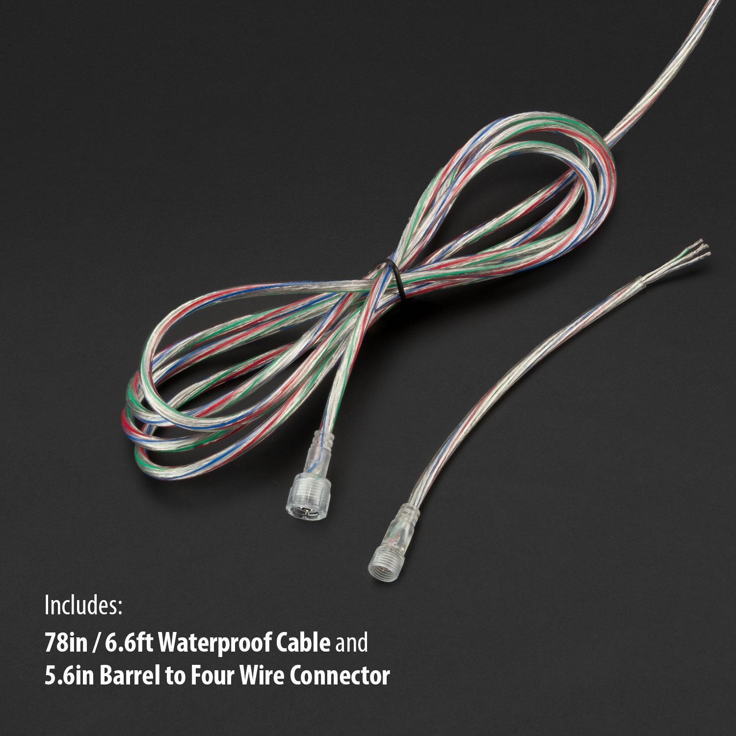 - Includes a 6.6ft Waterproof Cable w/ 5.6in Four Wire Connector