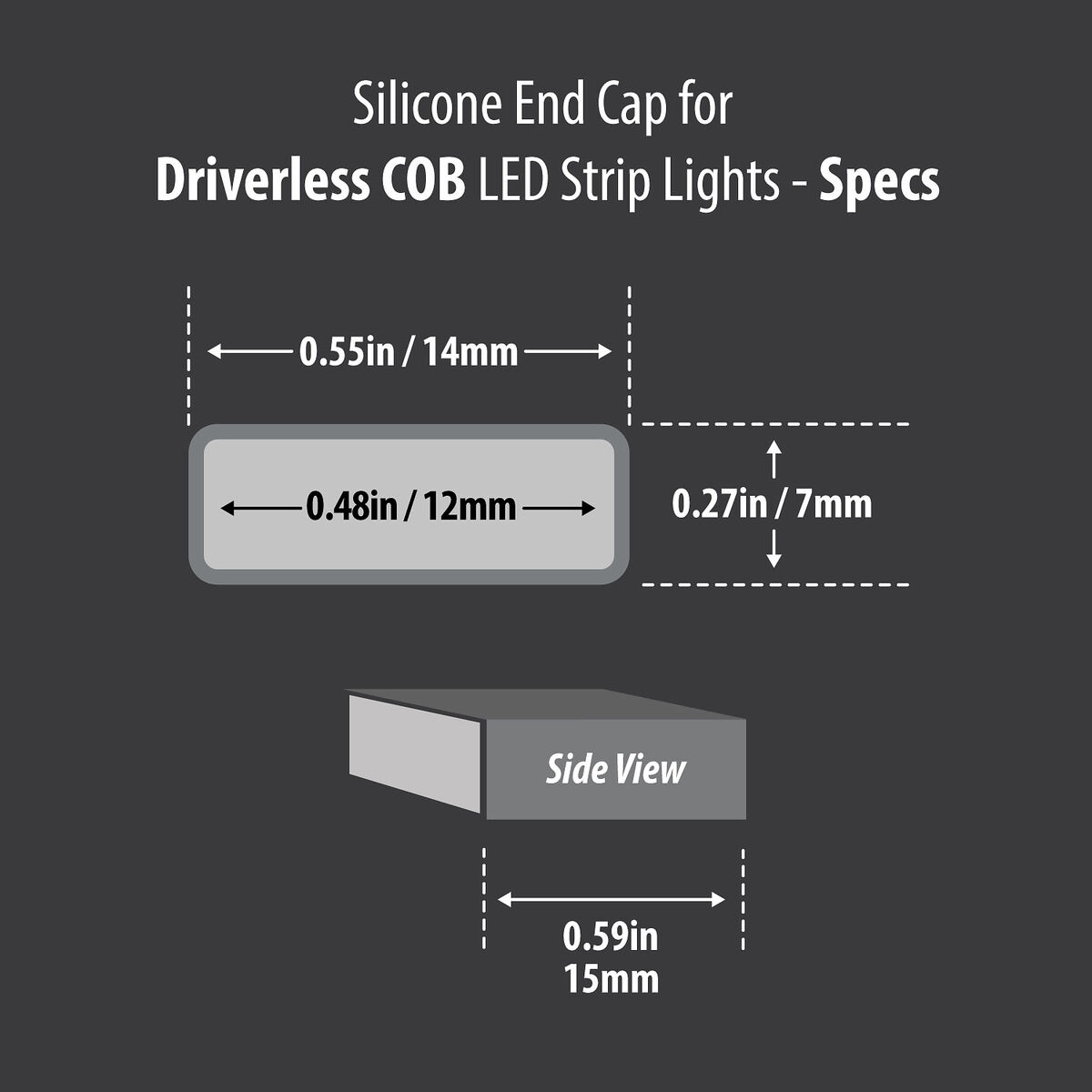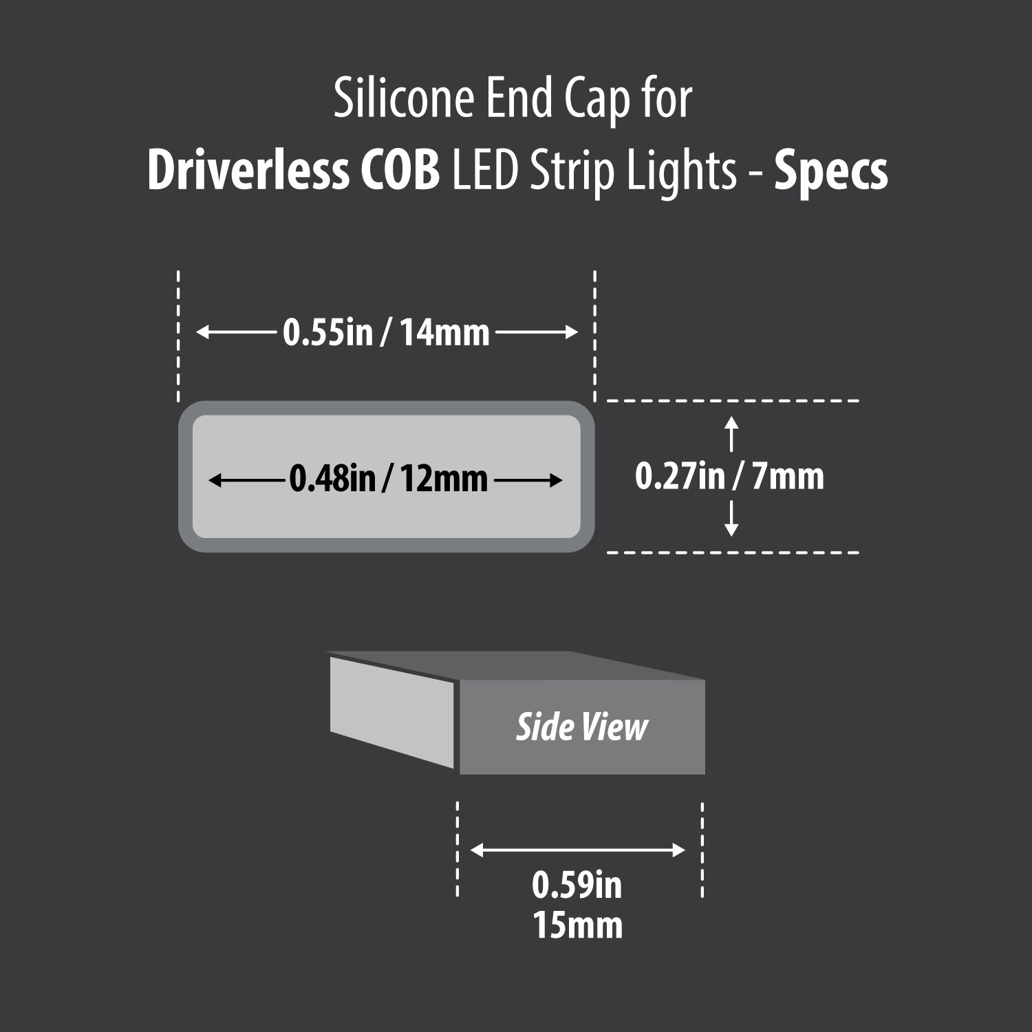 The Waterproof Silicone COB End Cap is the perfect finishing touch for any Dotless Driverless COB LED Light Strip. The COB End Cap requires silicone glue for a waterproof connection. The COB End Cap is made from high grade rigid silicone with UV protection, to help protect the strip and prevent discoloration or corrosion.